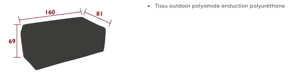 Elle apporte une protection contre les poussières, les salissures et protège de la pluie dans une certaine mesure. En cas d’inutilisation prolongée ou de fortes pluies, il est recommandé de mettre à l’abri les coussins.
