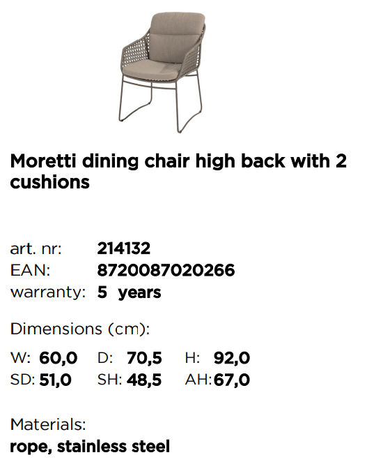 MORETTI Chaise de jardin dining couleur "terre" de 4 seasons outdoor