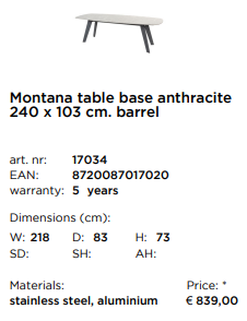 Ensemble composé de 6 chaises Veneto anthracite et d'une table Montana 240x103 cm dont la structure est en aluminium anthracite et le plateau en céramique "Terrazzo".