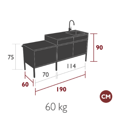 L’évier en acier inoxydable brossé complète cet ensemble raffiné : robuste, facile d’entretien, il est pensé pour durer en extérieur. Dans le cas d’un usage en front de mer, un entretien régulier à l’eau claire est recommandé.